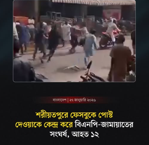 শরীয়তপুরে ফেসবুকে পোস্ট দেওয়াকে কেন্দ্র করে বিএনপি-জামায়াতের সংঘর্ষ, আহত ১২